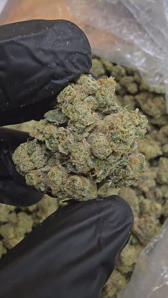 Berry Pie, an indica-dominant hybrid, is a premium strain celebrated for its decadent flavors and potent effects. A cross of Girl Scout Cookies and Blueberry, this strain produces chunky, resin-soaked buds with deep green, vibrant purple, and fiery orange hairs, all coated in a thick layer of glistening milky trichomes. The buds’ interior reveals a pinkish-purple coloration studded with sharp crystal trichomes—truly a visual delight.